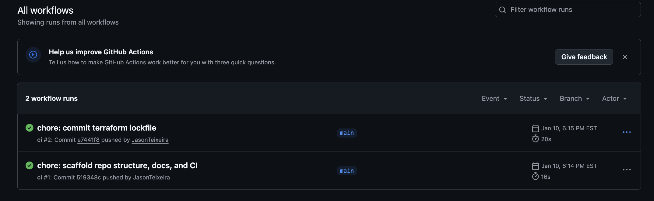- Change control: Terraform fmt/validate/plan in CI + a gated apply path
