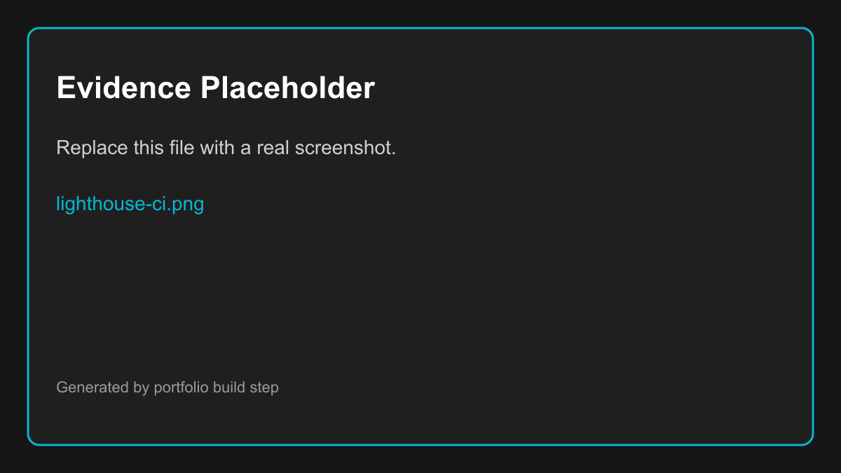 This project is presented like a production system: measurable, reproducible, and backed by evidence. (Next step: make these gates fully project-specific and auto-fed into the Quality Dashboard.)